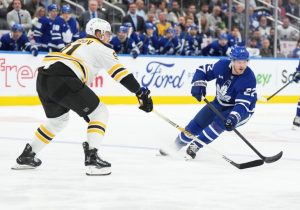 Nylander scored his 10th goal of the season at 9:58. His sharp-angled shot was deflected into the net by Boston defenseman Brandon Carlo while David Pastrnak was serving a high-sticking penalty.