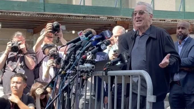 Item 1 of 3 Actor Robert De Niro speaks during a news conference outside the court during Donald Trump’s criminal trial on charges that he falsified business records to conceal money paid to silence porn star Stormy Daniels in 2016, in Manhattan state court New York City. REUTERS/Brendan McDermid